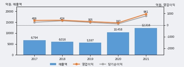 최근 실적을 살펴보면 2021년 매출액이 최근 5년 중 가장 높은 실적을 기록했음을 알 수 있다. 이전 최고 실적이었던 2020년 보다도 17.8%(1857억 7천만원) 늘어난 것으로 나타났다.