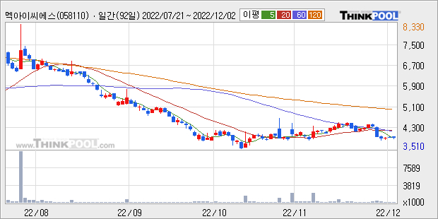 멕아이씨에스는 2021년 매출액 493억원과 영업이익 106억원을 기록했다. 전년대비 매출은 -27.6%, 영업이익은 -64.9% 각각 하락했다. 이 회사의 매출액 증감률과 영업이익 증감률은 각각 코스닥 하위 8%, 하위 19%에 해당된다.