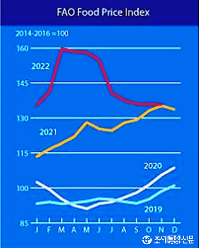 (조세금융신문=구재회 기자) 세계 식량가격이 지난 3월 고점을 기록한 뒤 8개월 연속으로 하락세를 나타냈다.