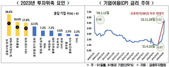 금리인상으로 자금조달이 어려워지던 가운데 김진태 강원지사 사태가 터지면서 기업어음 금리가 2009년 금융위기 이후 최대치로 솟구쳤다.
