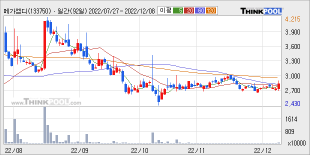 메가엠디의 2021년 매출액은 794억으로 전년대비 -3.7% 하락했고, 영업이익은 77억으로 전년대비 8.2% 상승했다. 이 회사의 매출액 증감률과 영업이익 증감률은 각각 코스닥 하위 22%, 하위 45%에 해당된다.