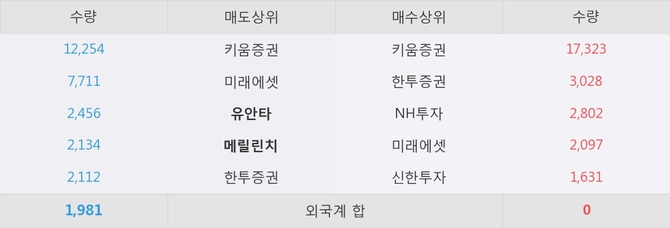 거래원 동향은 NH투자, 미래에셋 등이 매수 상위 목록에 나타나고 있다. 한편, 매도 창구 상위에는 유안타와 메릴린치가 눈에 띄고 있다.