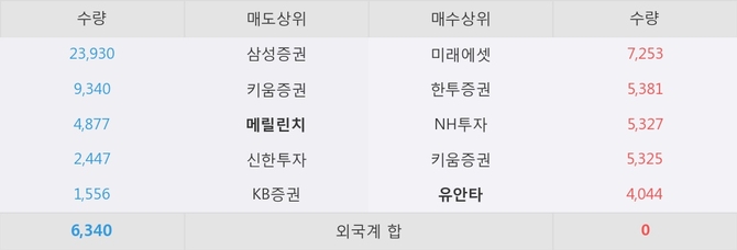 거래원 동향은 메릴린치, 삼성증권이 매도 상위 목록에 나타나고 있다. 한편, 매수 창구 상위에는 유안타가 눈에 띄고 있다.