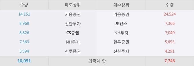 거래원 동향은 모건스, NH투자가 매수 상위 목록에 나타나고 있다. 한편, 매도 창구 상위에는 CS증권이 눈에 띄고 있다.