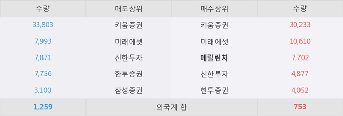 거래원 동향은 메릴린치, 미래에셋이 매수 상위 목록에 나타나고 있다.