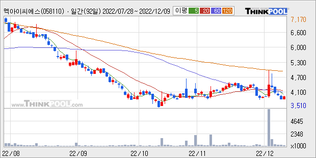멕아이씨에스의 2021년 매출액은 493억으로 전년대비 -27.6% 하락했고, 영업이익 역시 106억으로 전년대비 -64.9% 하락했다. 이 회사의 매출액 증감률과 영업이익 증감률은 각각 코스닥 하위 8%, 하위 19%에 해당된다.