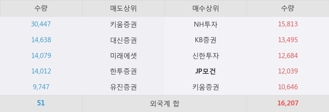 거래원 동향은 JP모건, NH투자가 매수 상위 목록에 나타나고 있다.