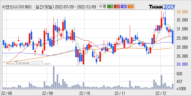 이엔드디의 2021년 매출액은 774억으로 전년대비 -16.1% 하락했고, 영업이익 역시 79억으로 전년대비 -51.8% 하락했다. 이 회사의 매출액 증감률과 영업이익 증감률은 각각 코스닥 하위 1%, 하위 1%에 해당된다.