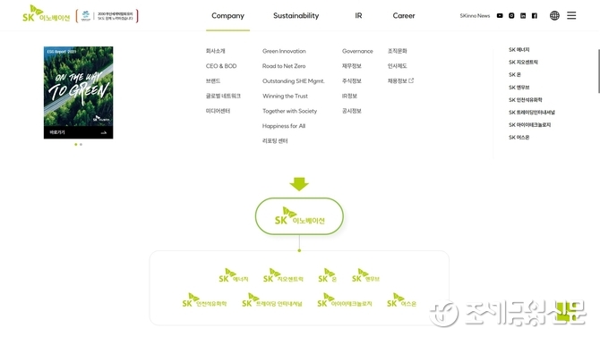 (조세금융신문=송기현 기자) SK이노베이션은 11일 ESG(환경·사회·지배구조) 및 투자자 소통을 강화하고자 '그린'에 방점을 둔 새 홈페이지를 제작했다고 발표했다.