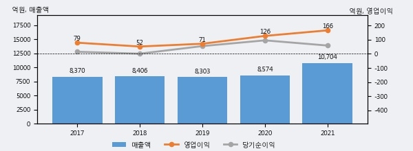 최근 실적을 살펴보면 2021년 매출액이 최근 5년 중 가장 높은 실적을 기록했음을 알 수 있다. 이전 최고 실적이었던 2020년 보다도 24.8%(2129억 6천만원) 늘어난 것으로 나타났다.