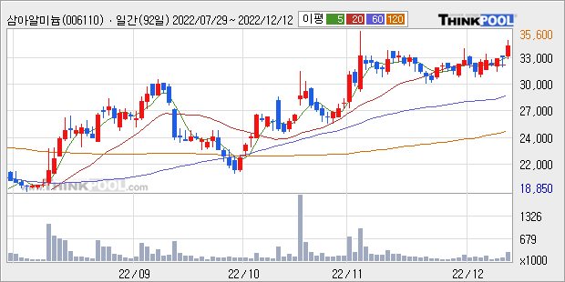 [그래프]삼아알미늄 일봉 차트