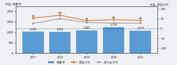화일약품의 2021년 매출액은 1070억으로 전년대비 -13.4% 하락했고, 영업이익 역시 43억으로 전년대비 -7.0% 하락했다. 이 회사의 매출액 증감률과 영업이익 증감률은 각각 코스닥 하위 14%, 하위 37%에 해당된다.