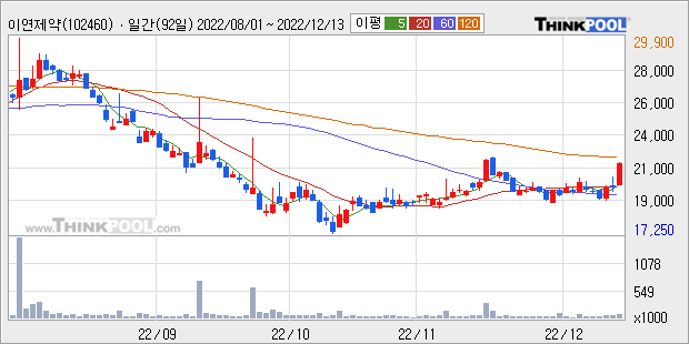 이연제약의 2021년 매출액은 전년대비 9.8% 늘어난 1428억원이고, 영업이익은 전년대비 -9.9% 줄어든 37억원을 기록했다. 이 회사의 매출액 증감률과 영업이익 증감률은 각각 코스피 하위 41%, 하위 31%에 해당된다.