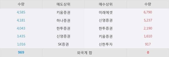현재 거래원 동향은 키움증권, 하나증권, 한투증권 등이 매도 상위 목록에 나타나고 있다.