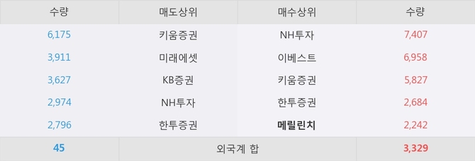 거래원 동향은 메릴린치, NH투자가 매수 상위 목록에 나타나고 있다.