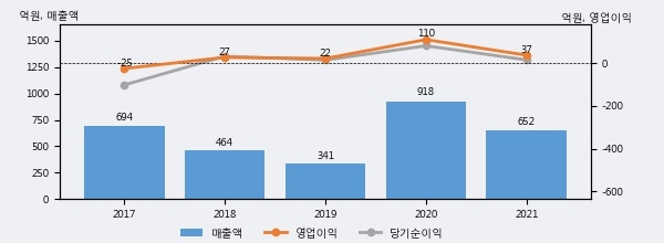 에프엔에스테크의 2021년 매출액은 전년대비 -29.0% 줄어든 652억원이고, 영업이익 역시 전년대비 -66.4% 줄어든 37억원을 기록했다. 이 회사의 매출액 증감률과 영업이익 증감률은 각각 코스닥 하위 8%, 하위 17%에 해당된다.