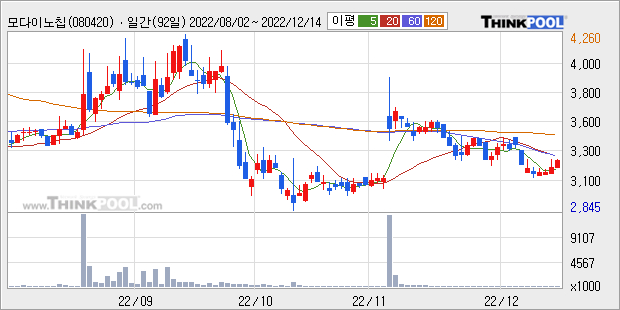 모다이노칩의 2021년 매출액은 전년대비 -3.1% 줄어든 3995억원이고, 영업이익은 전년대비 16.4% 늘어난 302억원을 기록했다. 이 회사의 매출액 증감률과 영업이익 증감률은 각각 코스닥 하위 23%, 하위 49%에 해당된다.