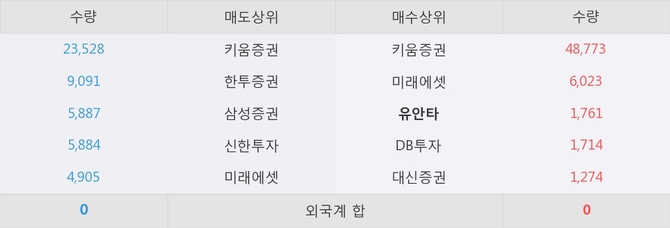 거래원 동향은 유안타, 미래에셋이 매수 상위 목록에 나타나고 있다.
