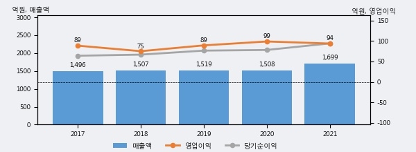 최근 실적을 살펴보면 2021년 매출액이 최근 5년 중 가장 높은 실적을 기록했음을 알 수 있다. 이전 최고 실적이었던 2019년 보다도 11.9%(180억 1천만원) 늘어난 것으로 나타났다.