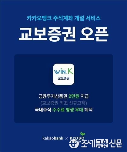 내년 6월 30일까지 카카오뱅크 앱을 통해 교보증권 계좌를 최초 개설한 고객에게 국내 주식 주문 시 사용할 수 있는 금융투자상품권 2만원을 지급하고, 모바일트레이딩시스템(MTS) 국내 주식 수수료 평생 우대 혜택을 제공한다고 카카오뱅크는 전했다.