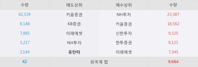 거래원 동향은 유안타, 미래에셋, NH투자 등이 매도 상위 목록에 나타나고 있다.