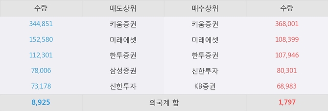 이 시각 주요 거래원은 미래에셋, 키움증권, 한투증권 등이 매수 상위 창구에 자리하고 있다.