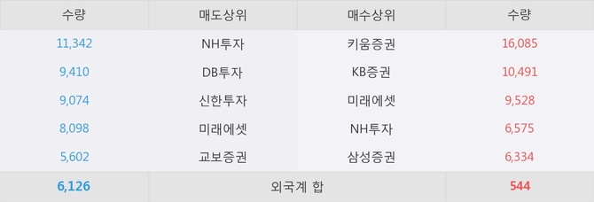 거래원 동향은 NH투자, 미래에셋 등이 매도 상위 목록에 나타나고 있다.