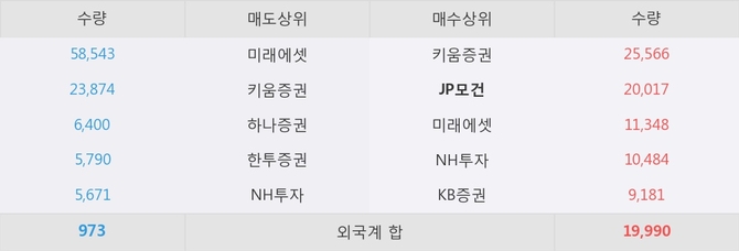 거래원 동향은 미래에셋, NH투자 등이 매도 상위 목록에 나타나고 있다. 한편, 매수 창구 상위에는 JP모건이 눈에 띄고 있다.