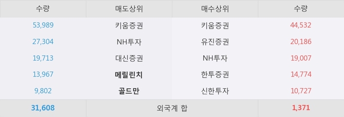거래원 동향은 메릴린치, 골드만, NH투자 등이 매도 상위 목록에 위치하고 있다.