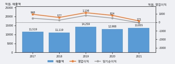 화승인더는 2021년 매출액 1조 3655억원과 영업이익 171억원을 기록했다. 전년대비 매출은 5.1% 상승했고, 영업이익은 -79.2% 하락했다. 이 회사의 매출액 증감률과 영업이익 증감률은 각각 코스피 하위 30%, 하위 11%에 해당된다.
