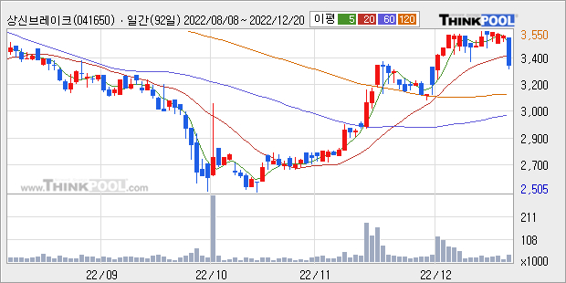 상신브레이크의 2021년 매출액은 전년대비 13.7% 늘어난 3970억원이고, 영업이익 또한 전년대비 55.2% 늘어난 122억원을 기록했다. 이 회사의 매출액 증감률과 영업이익 증감률은 각각 코스피 상위 49%, 상위 38%에 해당된다.