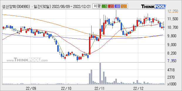 성신양회는 2021년 매출액 8335억원과 영업이익 300억원을 기록했다. 전년대비 매출은 15.4%, 영업이익은 41.6% 각각 상승했다. 이 회사의 매출액 증감률과 영업이익 증감률은 각각 코스피 상위 44%, 상위 42%에 해당된다.
