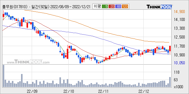 풀무원의 2021년 매출액은 전년대비 9.0% 늘어난 2조 5189억원이고, 영업이익은 전년대비 -16.2% 줄어든 385억원을 기록했다. 이 회사의 매출액 증감률과 영업이익 증감률은 각각 코스피 하위 39%, 하위 28%에 해당된다.