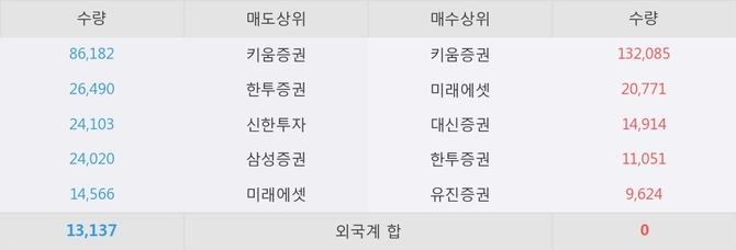이 시각 주요 거래원은 미래에셋, 키움증권, 대신증권 등이 매수 상위 창구에 자리하고 있다.
