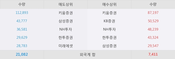 거래원 동향은 삼성증권, NH투자, 미래에셋 등이 매도 상위 목록에 나타나고 있다.