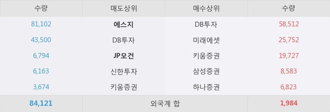 현재 거래원 동향을 보면 에스지와 JP모건이 각각 순매도 상위 창구 1위와 3위를 기록하고 있다.