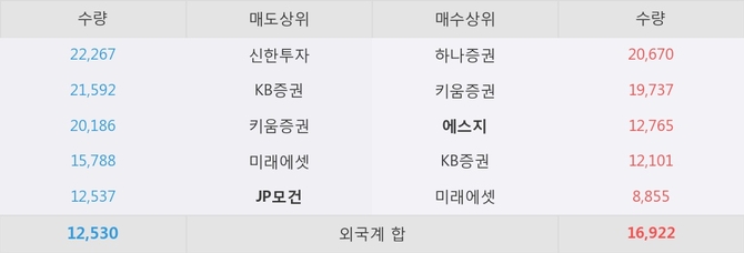 거래원 동향은 JP모건, 미래에셋이 매도 상위 목록에 나타나고 있다. 한편, 매수 창구 상위에는 에스지가 눈에 띄고 있다.
