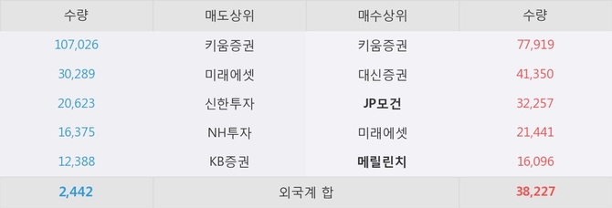 거래원 동향은 JP모건, 메릴린치, 미래에셋 등이 매수 상위 목록에 위치하고 있다.