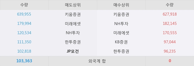 거래원 동향은 NH투자, 미래에셋 등이 매수 상위 목록에 나타나고 있다. 한편, 매도 창구 상위에는 JP모건이 눈에 띄고 있다.
