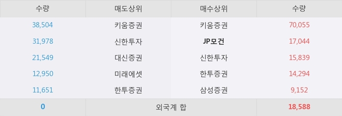 거래원 동향은 JP모건, 삼성증권이 매수 상위 목록에 나타나고 있다.