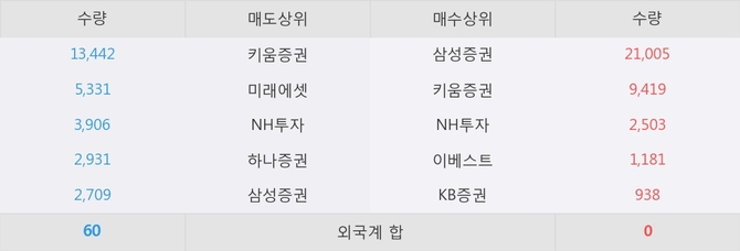 거래원 동향은 삼성증권, NH투자 등이 매수 상위 목록에 나타나고 있다.