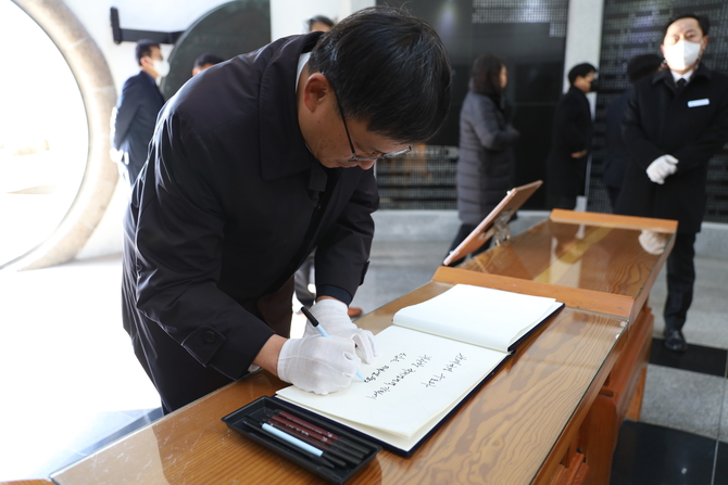 고석진 부산세관장은 2일 2023년 계묘년 새해를 맞아 충혼탑에서 주요 간부와 함께 호국영령을 추모하고, 국민을 위한 관세행정을 펼칠 것을 다짐했다.