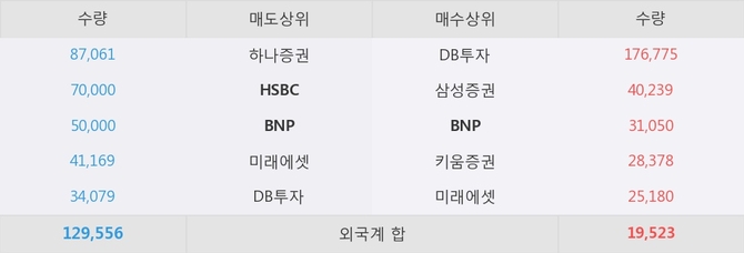 거래원 동향은 HSBC, BNP, 미래에셋 등이 매도 상위 목록에 위치하고 있다. 한편, 매수 창구 상위에는 BNP이 눈에 띄고 있다.