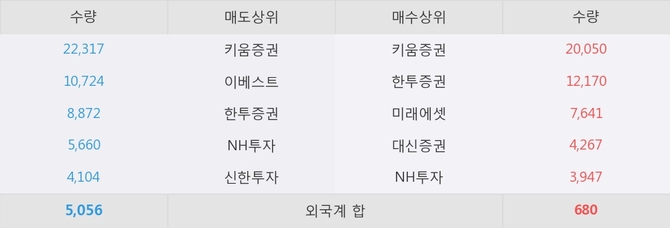 이 시각 주요 거래원은 NH투자, 키움증권, 이베스트 등이 매도 상위 창구에 자리하고 있다.
