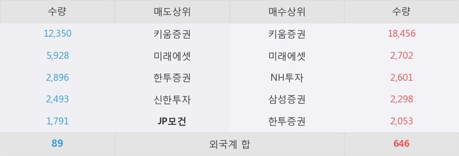 거래원 동향은 미래에셋, NH투자, 삼성증권 등이 매수 상위 목록에 나타나고 있다. 한편, 매도 창구 상위에는 JP모건이 눈에 띄고 있다.