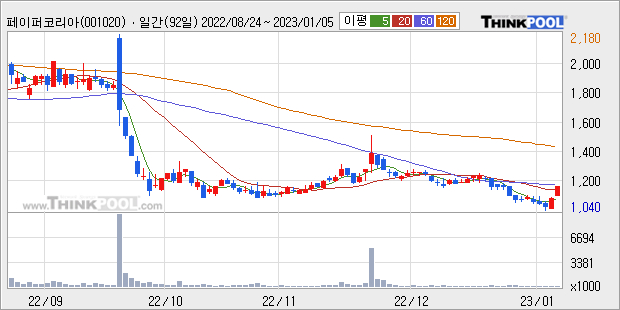 페이퍼코리아는 2021년 매출액 4353억원과 영업이익 315억원을 기록했다. 전년대비 매출은 -10.1%, 영업이익은 -9.1% 각각 하락했다. 이 회사의 매출액 증감률과 영업이익 증감률은 각각 코스피 하위 8%, 하위 33%에 해당된다.