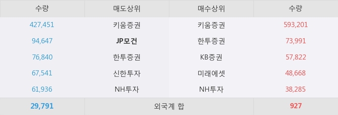 거래원 동향은 미래에셋, NH투자 등이 매수 상위 목록에 나타나고 있다. 한편, 매도 창구 상위에는 JP모건이 눈에 띄고 있다.