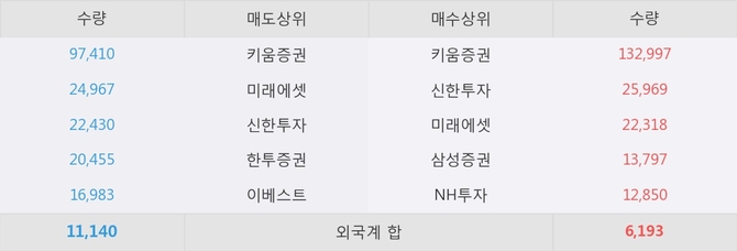 거래원 동향은 미래에셋, 삼성증권, NH투자 등이 매수 상위 목록에 나타나고 있다.