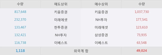 거래원 동향은 NH투자, 미래에셋, 삼성증권 등이 매수 상위 목록에 나타나고 있다.