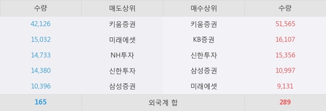 거래원 동향은 삼성증권, 미래에셋 등이 매수 상위 목록에 나타나고 있다.